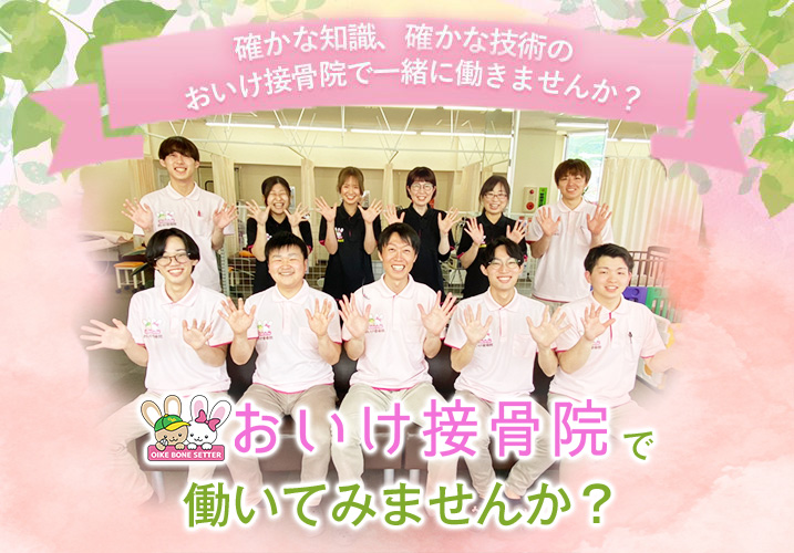 おいけ接骨院 桐生院は地域No.1を目指しており、交通事故施術から根本施術、産後の骨盤矯正、美容部門など多岐に渡り学ぶ事が出来ます。